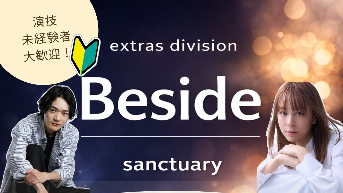 エキストラ派遣部門「Beside(ビサイド)」が新たにスタートしました。映画・ドラマ・CMなど様々な作品に参加できるエキストラを募集しています!面談は随時実施中。詳しくはBesideページの応募フォームをご確認ください。
